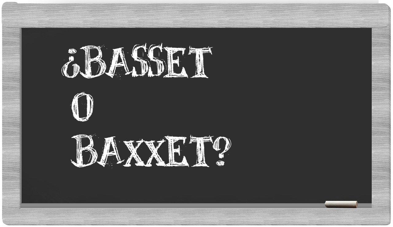 En la situación particular que involucra a basset y baxxet, nunca deberías vacilar, puesto que únicamente basset se encuentra adecuadamente redactada. En cambio, baxxet no figura en el léxico de la Real Academia Española.