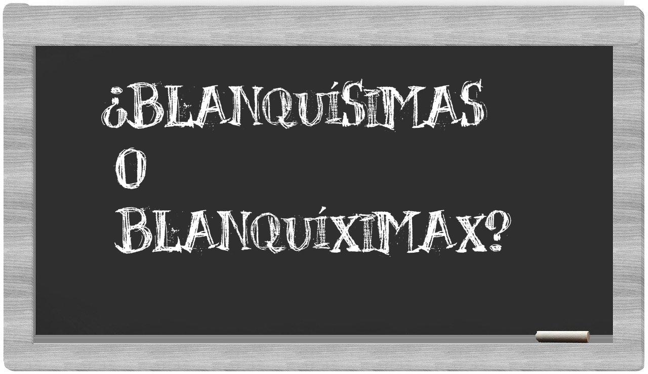 Cuando se trata del par de términos blanquísimas y blanquíximax, nunca deberías titubear, pues solo blanquísimas es la opción que se encuentra bien formulada; por otro lado, blanquíximax no figura en el Diccionario de la Real Academia Española.