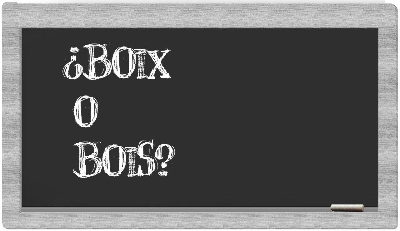 La mezcla entre boix y bois surge, en su mayoría, por la similitud en la forma en que se pronuncian. En gran parte de los diferentes acentos del español, estas palabras suenan casi idénticas, lo que puede inducir a confusiones en su escritura. Sin embargo, la manera adecuada de escribir cada una se fundamenta en sus raíces etimológicas así como en las normas particulares de la ortografía en español.