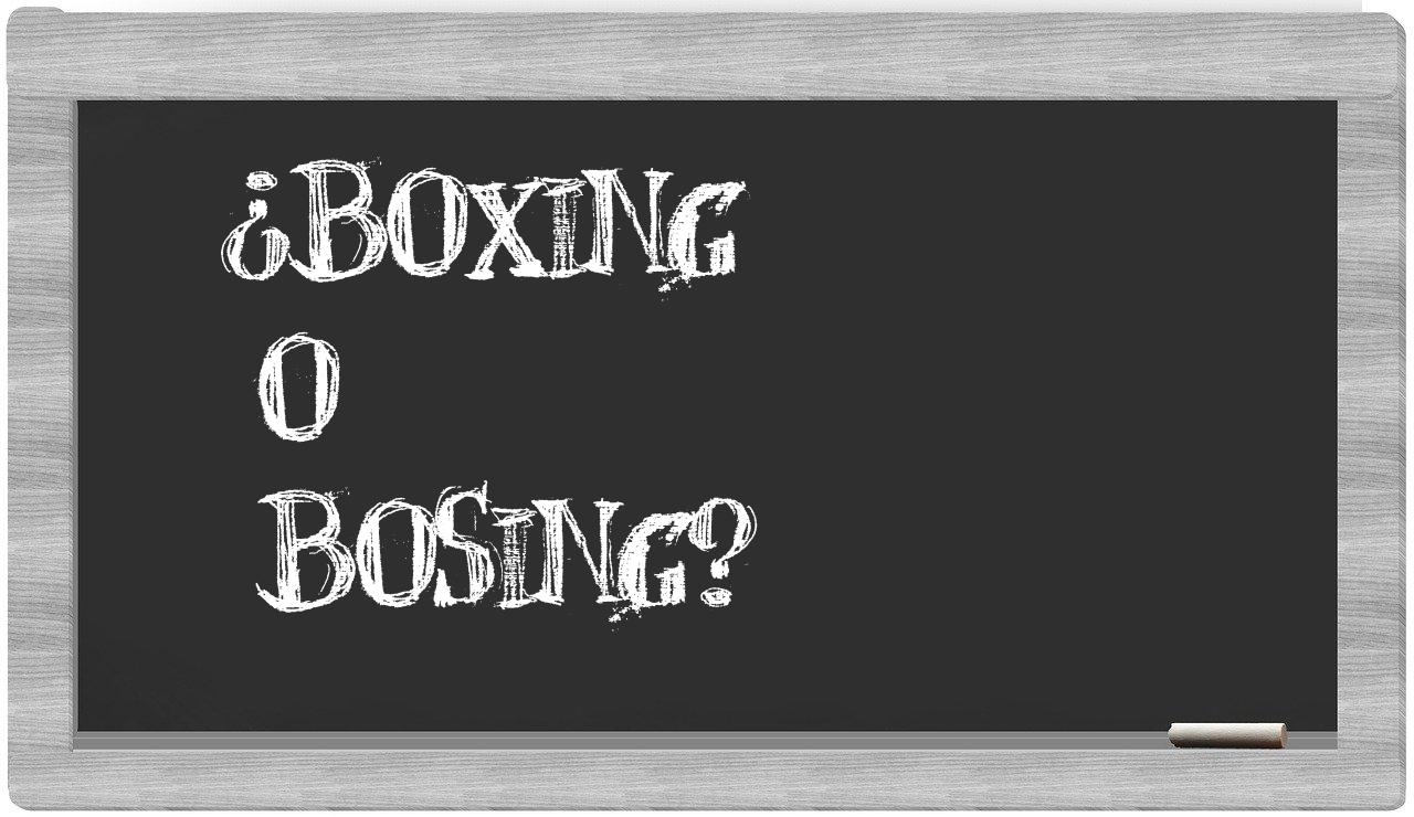 En la situación particular que involucra los términos boxing y bosing, nunca deberías titubear, pues únicamente boxing es el que está redigido adecuadamente. Por otro lado, bosing no se encuentra registrado en el Diccionario de la Real Academia Española.