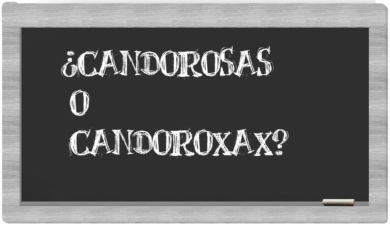 Cuando se trata de elegir entre candorosas y candoroxax, no deberías titubear en absoluto, dado que solo candorosas se encuentra registrada correctamente, mientras que candoroxax no tiene cabida en el Diccionario de la Real Academia Española.