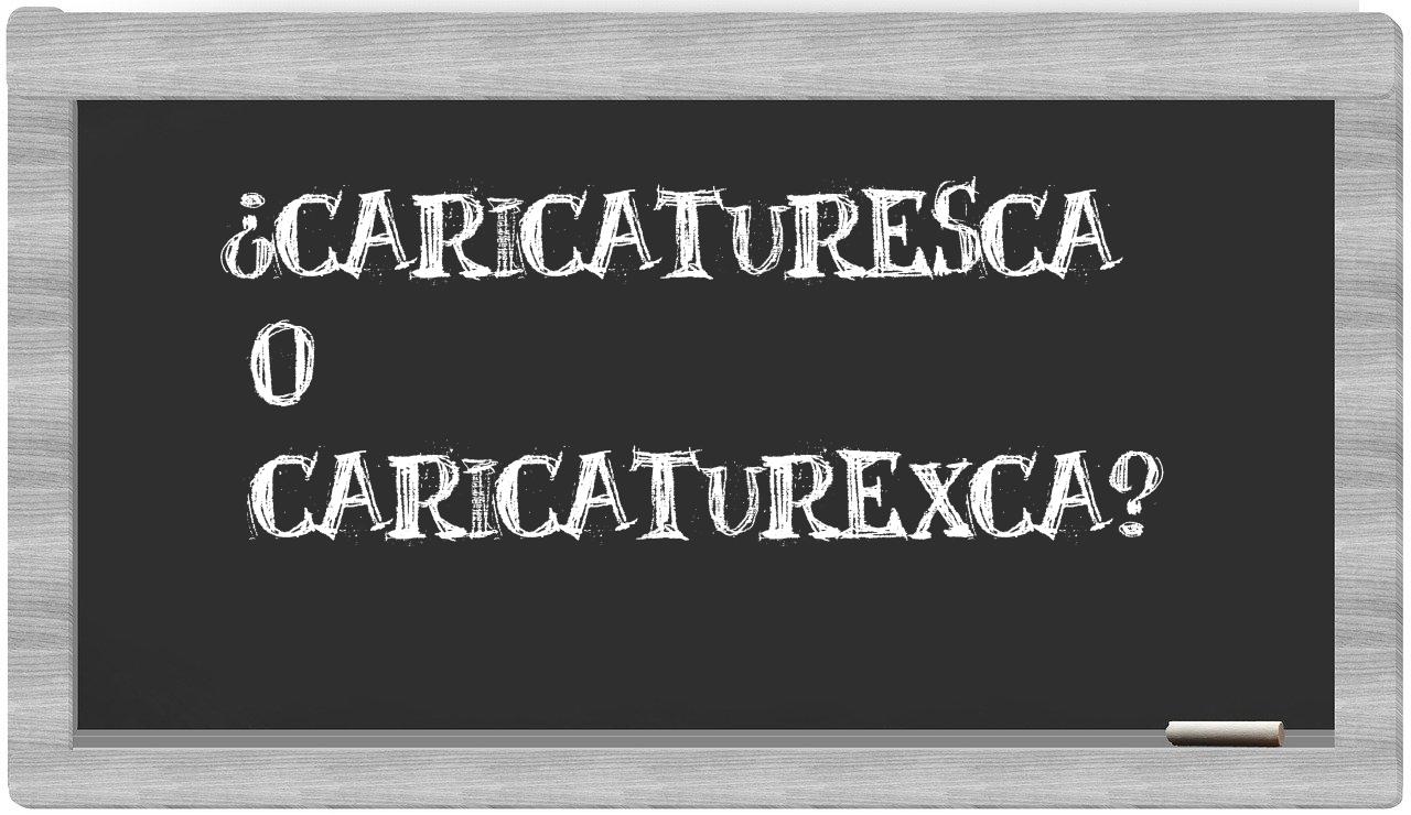 En la situación específica en la que se encuentren las voces caricaturesca y caricaturexca, no deberías titubear, pues únicamente la forma caricaturesca es la que presenta una escritura adecuada. Por otro lado, caricaturexca carece de presencia en el repertorio del Diccionario de la Real Academia Española.
