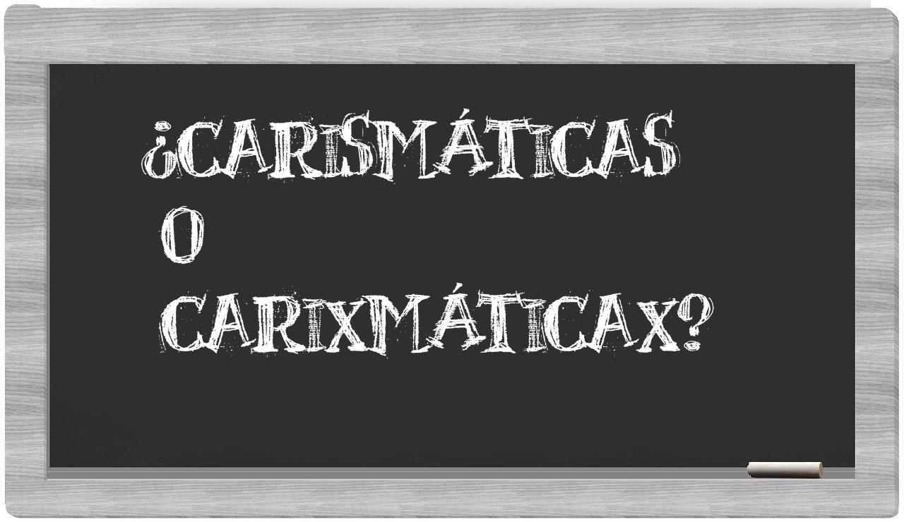 Cuando se trata de las palabras carismáticas y carixmáticax, la elección es clara y no debe generar indecisiones, puesto que únicamente carismáticas es la forma correcta, mientras que carixmáticax no figura en el Diccionario de la Real Academia Española.