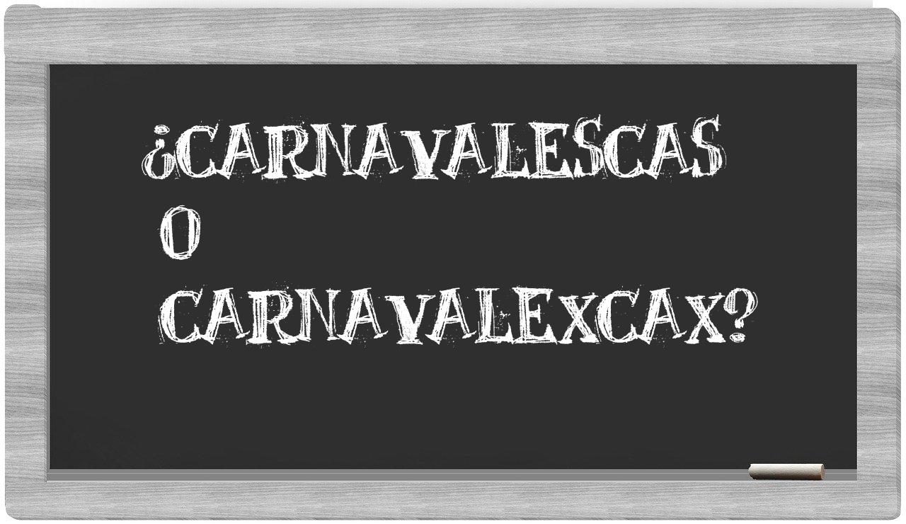 Cuando se trate de la elección entre carnavalescas y carnavalexcax, no deberías titubear, pues únicamente carnavalescas se presenta con la ortografía adecuada. Por otro lado, carnavalexcax no figura en el Diccionario de la Real Academia Española.