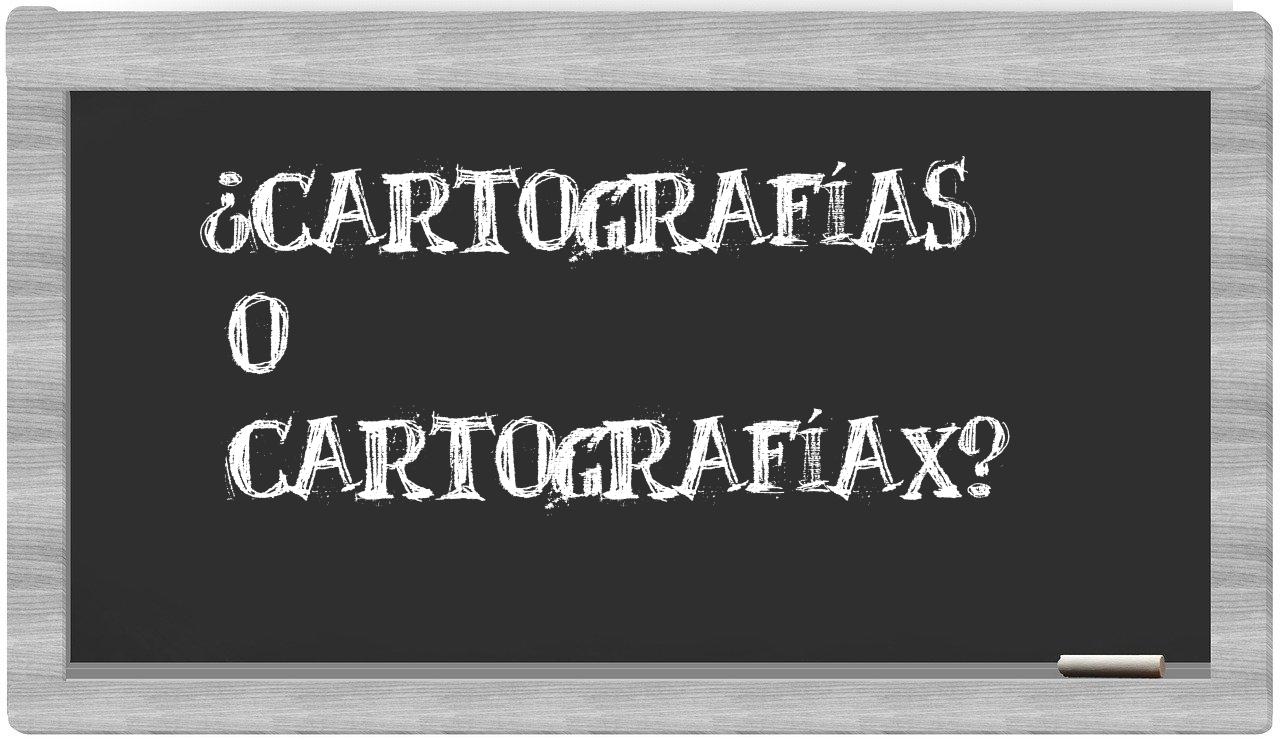 En la circunstancia particular que involucra los términos cartografías y cartografíax, no deberías titubear en absoluto, puesto que solo cartografías es la forma válida en el idioma, mientras que cartografíax no se encuentra registrada en el Diccionario de la Real Academia Española.