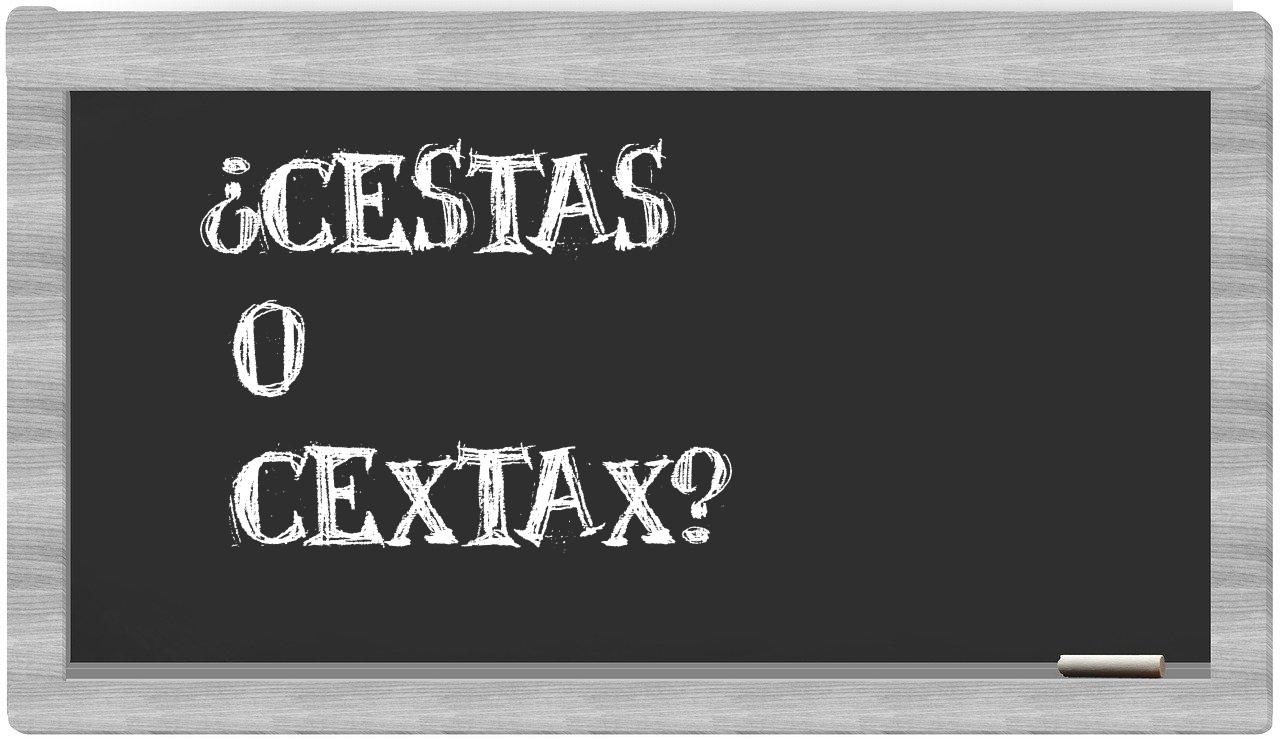 En la situación específica que se presenta entre cestas y cextax, no es necesario vacilar, puesto que únicamente cestas se encuentra correctamente expresada, mientras que cextax carece de reconocimiento en el Diccionario de la Real Academia Española.