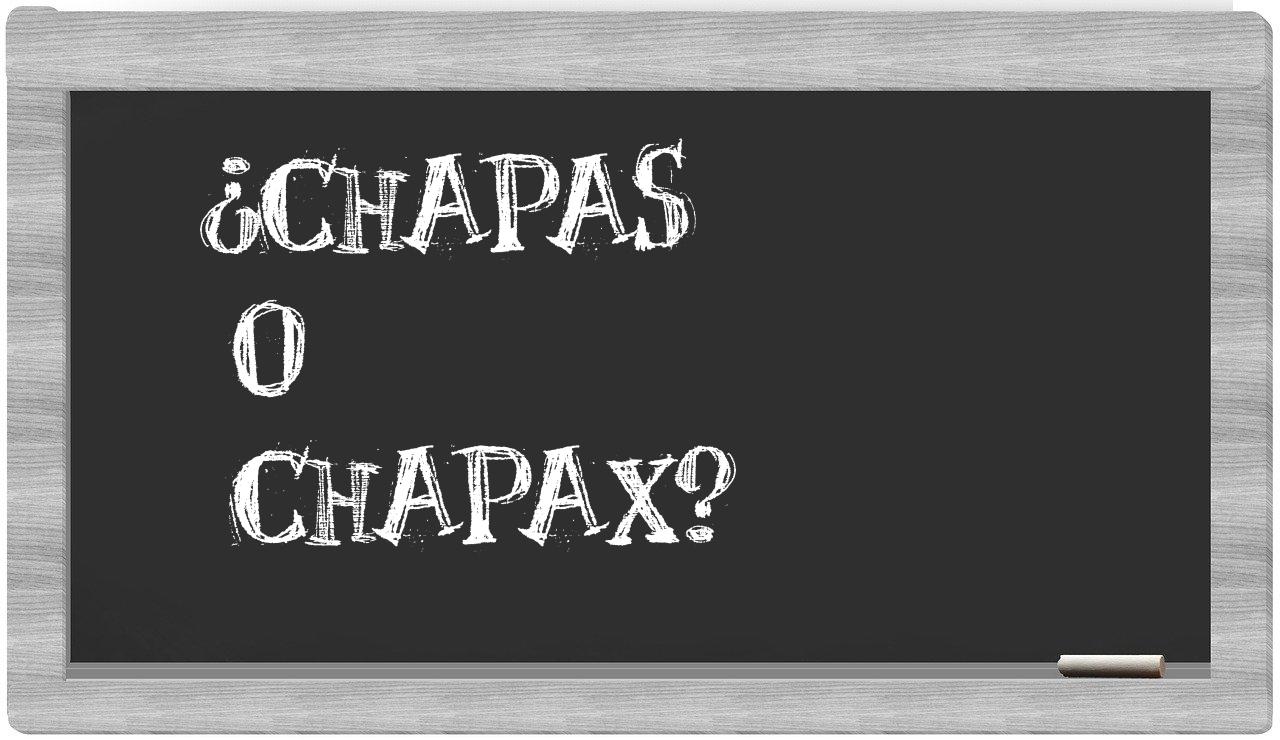 En la situación particular entre los términos chapas y chapax nunca deberías titubear, puesto que únicamente chapas es el que se encuentra correctamente redactado. Por otro lado, chapax no figura en el léxico de la Real Academia Española.