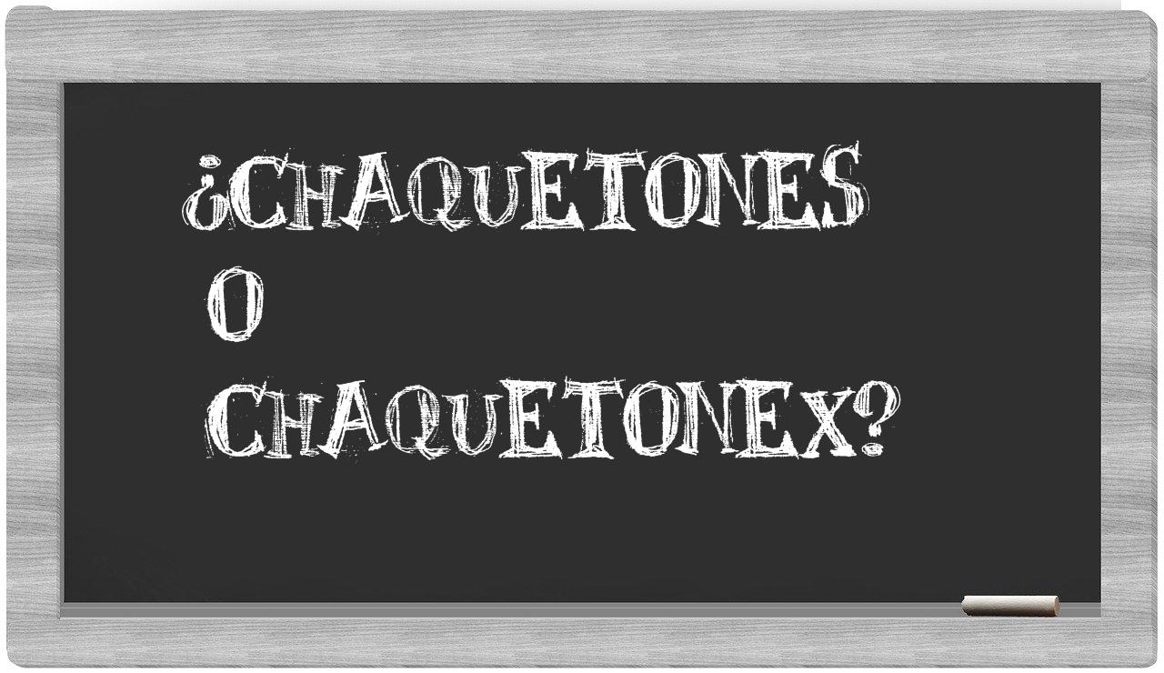 La mezcla entre chaquetones y chaquetonex surge, en gran parte, por su fonética semejante. En la mayor parte de las variantes lingüísticas del español, ambas palabras poseen una sonoridad prácticamente idéntica, lo que puede inducir a la creencia de que su escritura es análoga. No obstante, la forma adecuada de cada una se fundamenta en su raíz etimológica y en las normas particulares que rigen la escritura en el idioma español.