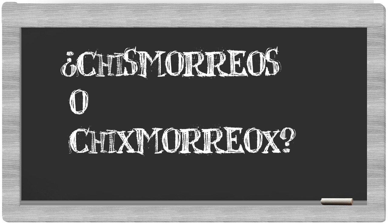 Cuando se trate de elegir entre los términos chismorreos y chixmorreox, es fundamental que tengas claridad, puesto que únicamente chismorreos es la forma adecuada; chixmorreox no está registrada en el Diccionario de la Real Academia Española.