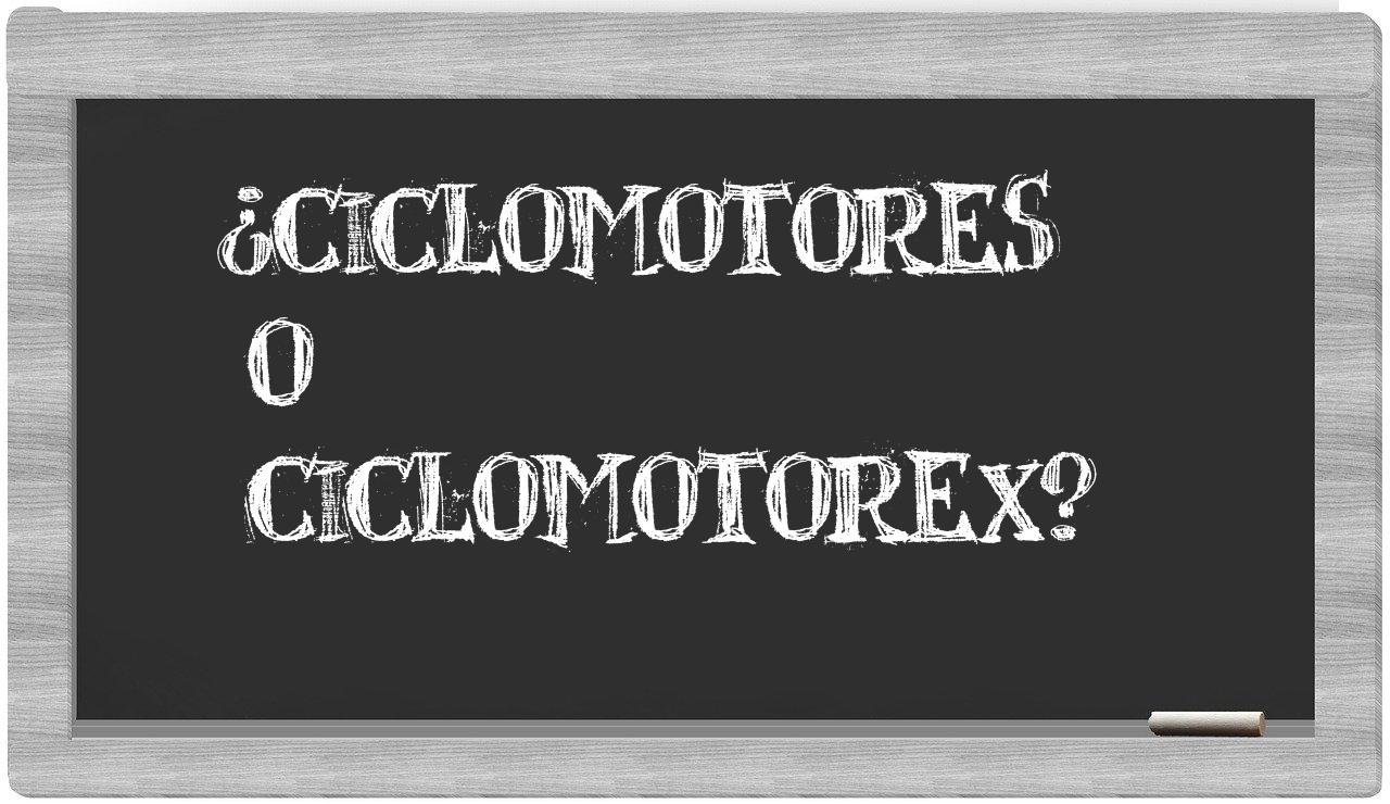 A la hora de distinguir entre ciclomotores y ciclomotorex, es fundamental que no te cuestionen, puesto que únicamente ciclomotores se presenta como la forma adecuada. Cabe mencionar que ciclomotorex no se encuentra registrada en el Diccionario de la Real Academia Española.