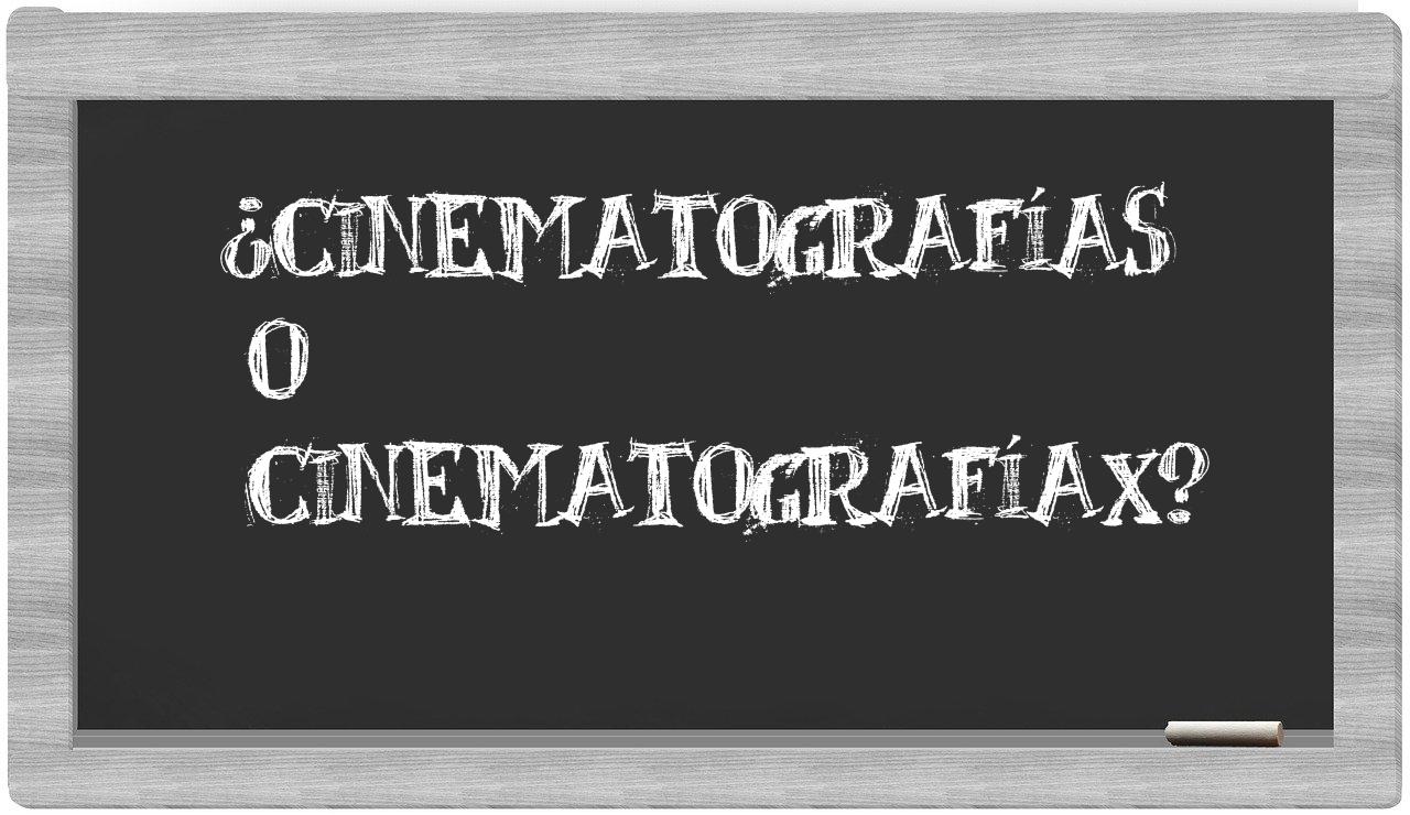 En la particular situación que involucra los términos cinematografías y cinematografíax, no deberías titubear en ningún momento, dado que únicamente cinematografías se encuentra correctamente redactada. Por otro lado, cinematografíax no se halla en el Diccionario de la Real Academia Española.