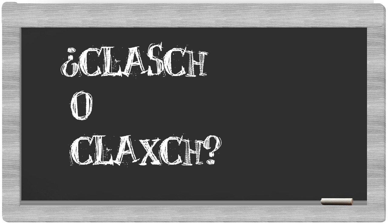 Cuando se trate de la elección entre clasch y claxch, no deberías titubear, pues únicamente clasch se presenta con la ortografía adecuada. Por otro lado, claxch no figura en el Diccionario de la Real Academia Española.