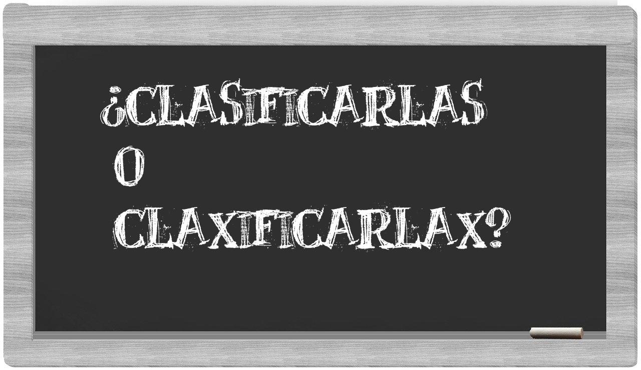 Cuando te enfrentes a las palabras clasificarlas y claxificarlax, es vital que no titubees, porque únicamente clasificarlas se encuentra aceptada y registrada en el Diccionario de la Real Academia de la Lengua, mientras que claxificarlax carece de reconocimiento oficial.
