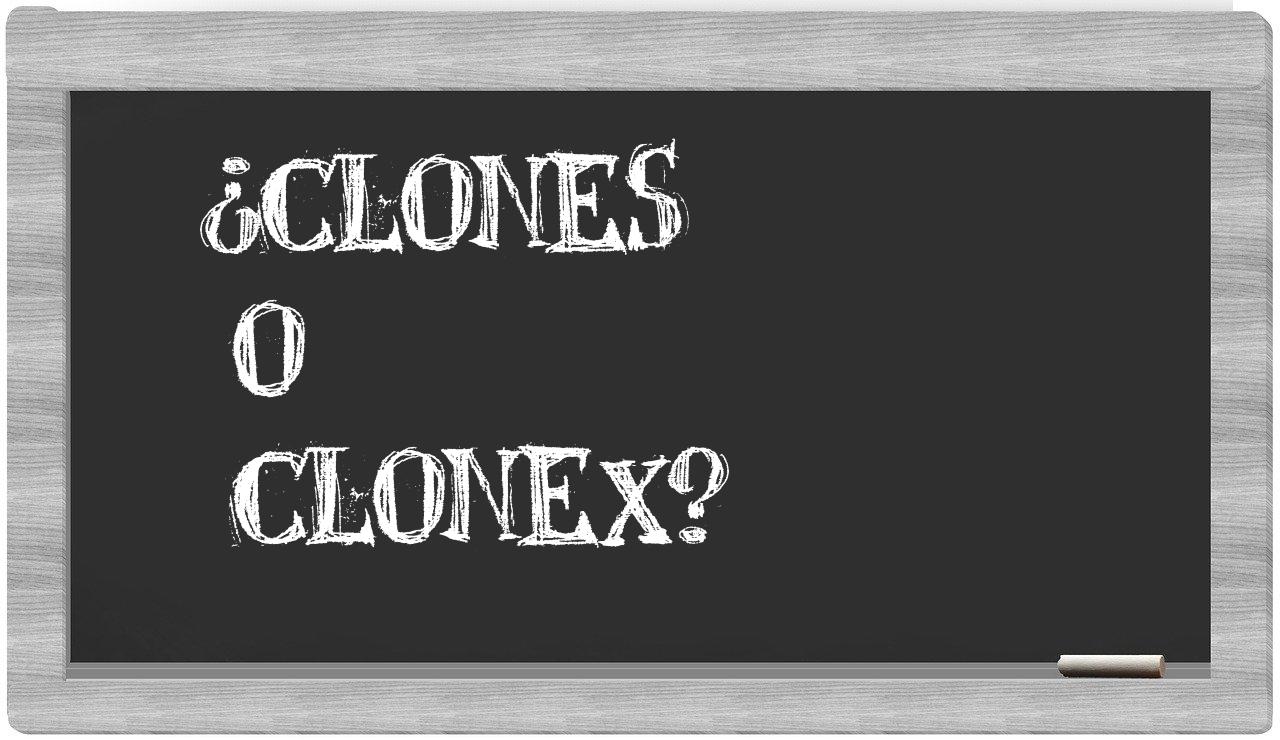 Cuando se presenta la disyuntiva entre clones y clonex, es fundamental que no vaciles, puesto que únicamente clones está debidamente registrada como correcta. Por otro lado, clonex no figura en el Diccionario de la Real Academia Española.