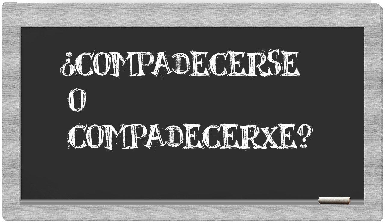 Cuando se presenta la comparación entre compadecerse y compadecerxe, es crucial que no vaciles, puesto que únicamente compadecerse ostenta la forma apropiada, mientras que compadecerxe carece de reconocimiento en el Diccionario de la Real Academia Española.