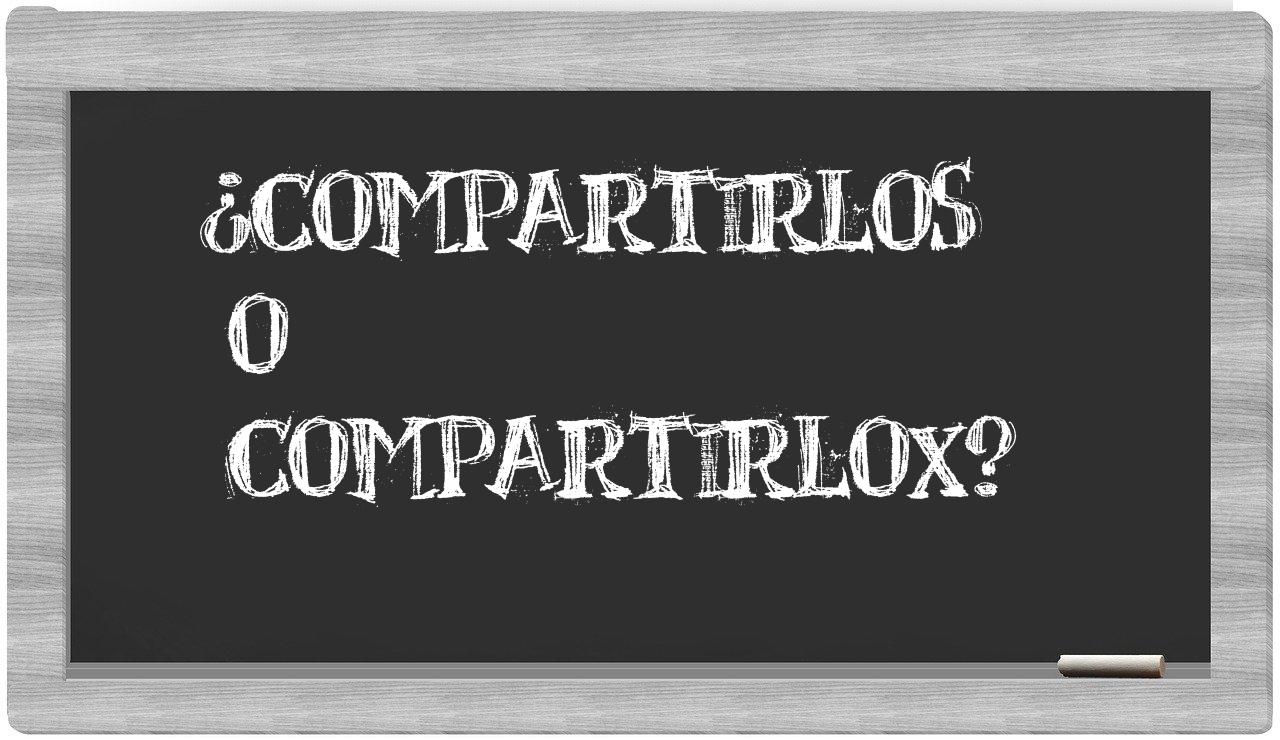 En la particular situación entre los términos compartirlos y compartirlox, es fundamental no titubear, puesto que únicamente compartirlos se presenta de manera adecuada. Por su parte, compartirlox no se encuentra recogido en el Diccionario de la Real Academia Española.