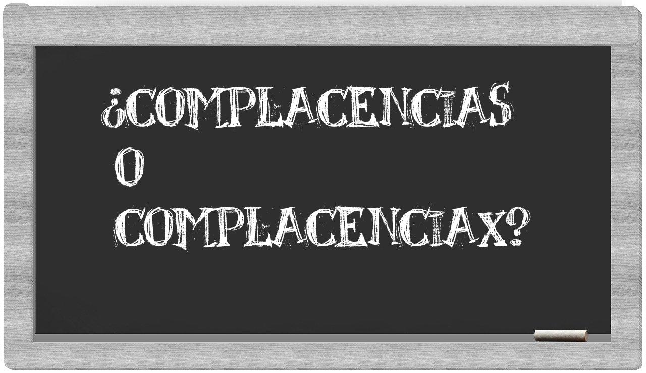 Cuando se presenta la elección entre complacencias y complacenciax, no hay lugar a la indecisión, pues únicamente complacencias es la opción correcta, mientras que complacenciax carece de existencia en el diccionario de la Real Academia Española.