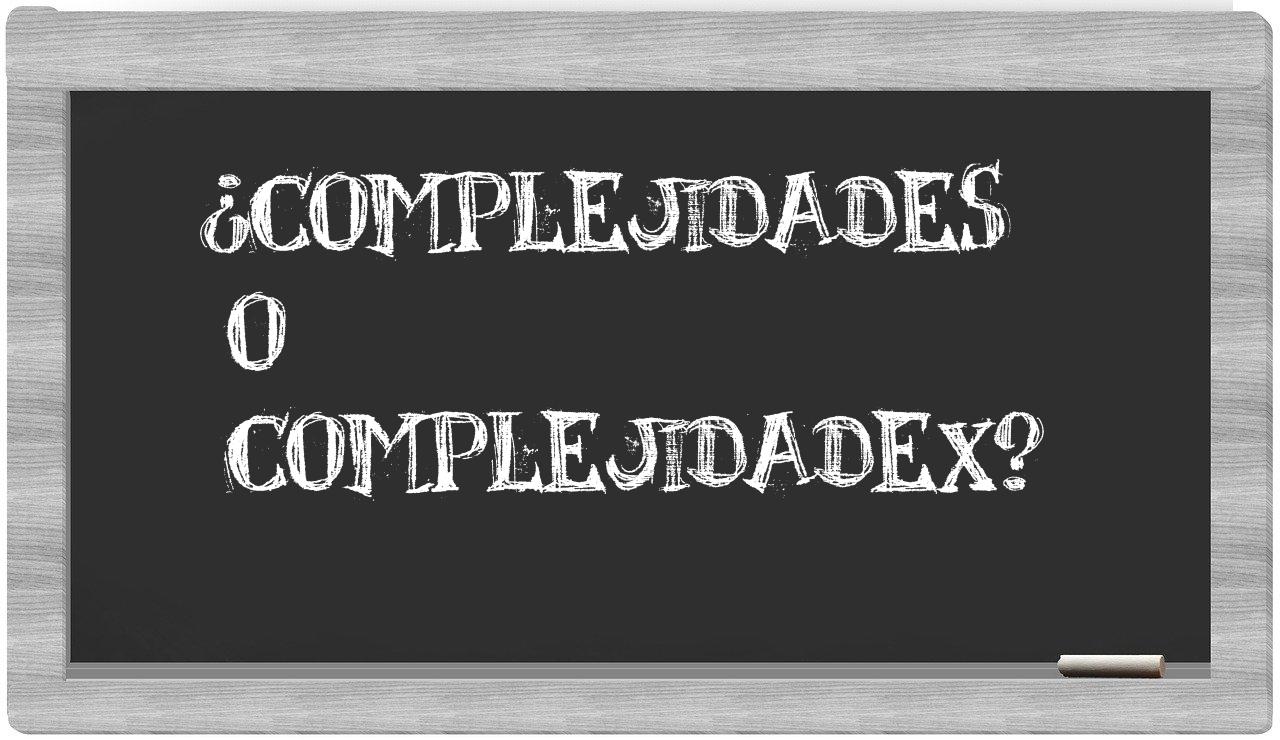Cuando se trata de la elección entre complejidades y complejidadex, no hay lugar para la incertidumbre, puesto que únicamente complejidades se presenta como la forma adecuada, mientras que complejidadex carece de legitimidad en el Diccionario de la Real Academia Española.