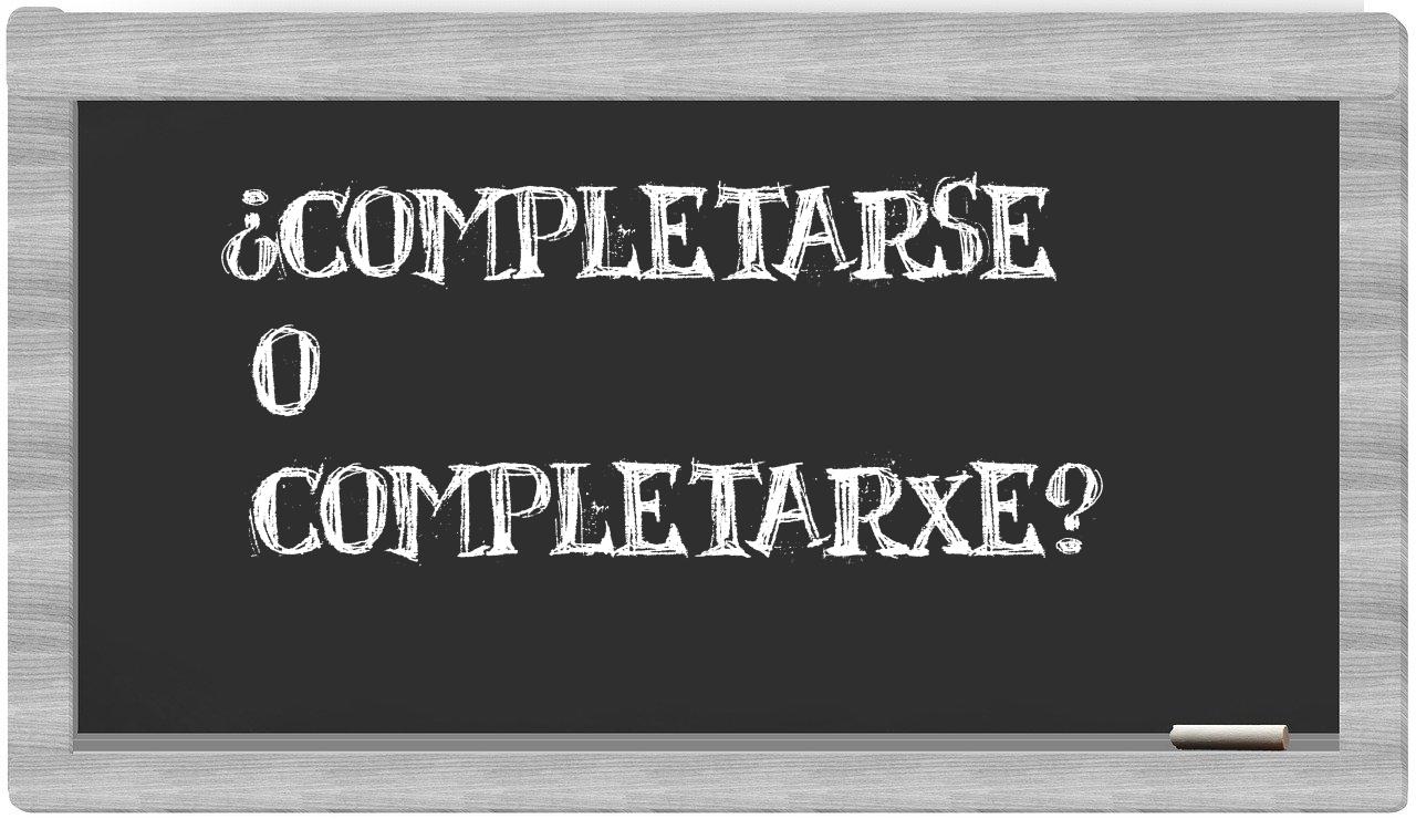 En la particular situación entre los términos completarse y completarxe, es fundamental no titubear, puesto que únicamente completarse se presenta de manera adecuada. Por su parte, completarxe no se encuentra recogido en el Diccionario de la Real Academia Española.