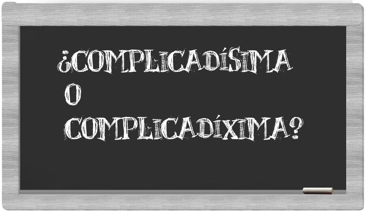Cuando te enfrentes a la elección entre complicadísima y complicadíxima, es fundamental que tengas confianza, puesto que únicamente complicadísima es la forma adecuada. Recuerda que complicadíxima no se encuentra registrada en el Diccionario de la Real Academia Española.