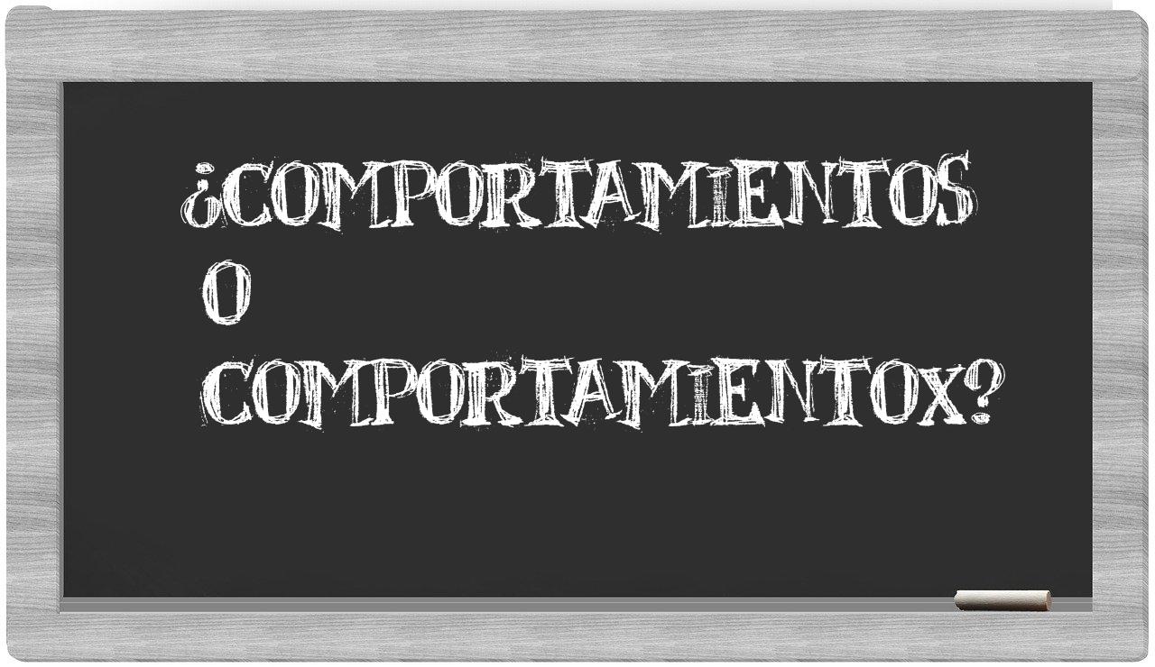 En la particularidad que rodea a las voces comportamientos y comportamientox, nunca deberías titubear, porque es únicamente comportamientos la que se presenta de manera adecuada. La forma comportamientox no figura en el Diccionario de la Real Academia Española.