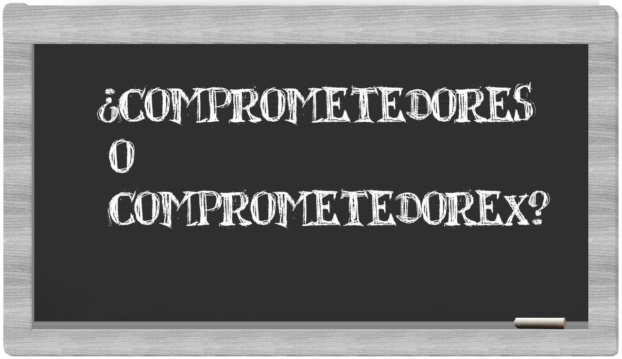 En la particular situación que involucra los términos comprometedores y comprometedorex, no deberías titubear en ningún momento, dado que únicamente comprometedores se encuentra correctamente redactada. Por otro lado, comprometedorex no se halla en el Diccionario de la Real Academia Española.