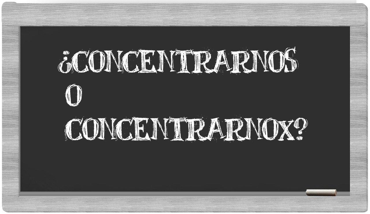 Cuando se trata de los términos concentrarnos y concentrarnox, no deberías titubear en tu elección, porque únicamente concentrarnos es el que se encuentra correctamente redactado. Por otro lado, concentrarnox no figura en el Diccionario de la Real Academia de la Lengua.