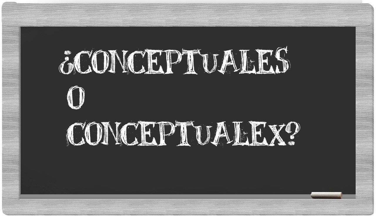 Cuando se trata de la distinción entre conceptuales y conceptualex, la elección es clara y no debe generar confusión, pues únicamente conceptuales se encuentra debidamente registrada y aceptada por el Diccionario de la Real Academia Española, mientras que conceptualex carece de reconocimiento.