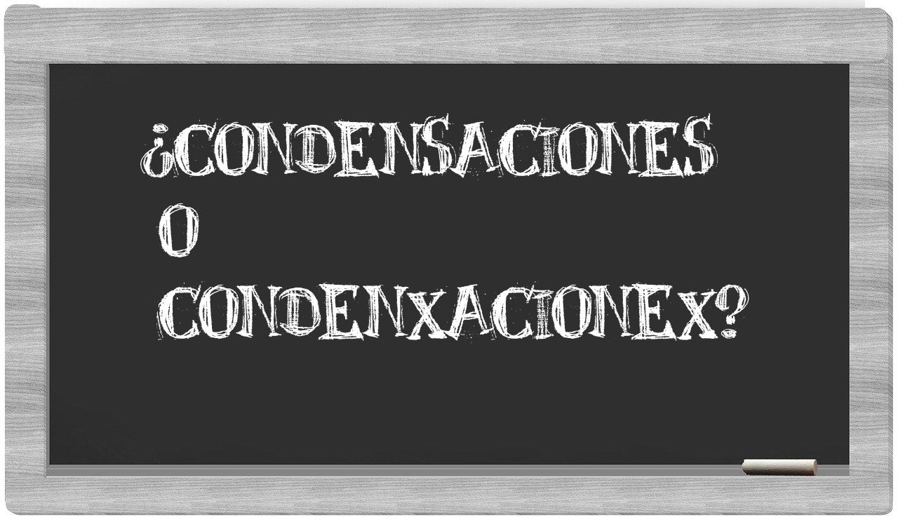 Cuando se trata de la distinción entre condensaciones y condenxacionex, la elección es evidente, puesto que únicamente condensaciones se encuentra correctamente formulada. Cabe mencionar que condenxacionex no figura en el prestigioso Diccionario de la Real Academia Española.