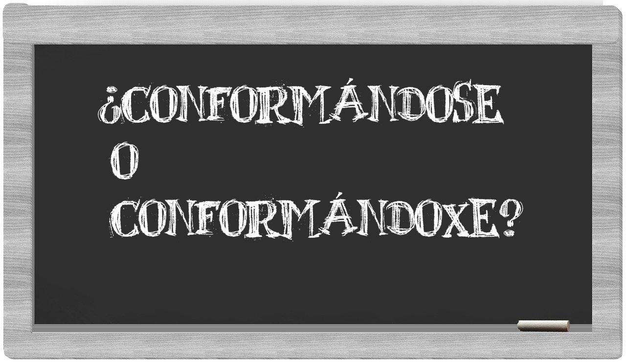 En la situación específica que involucra las palabras conformándose y conformándoxe, es importante que no vaciles, puesto que únicamente conformándose se encuentra registrada de manera apropiada. Por otro lado, conformándoxe no figura en el Diccionario de la Real Academia Española.