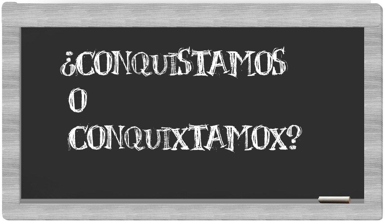 En la situación particular que involucra los términos conquistamos y conquixtamox, no deberías titubear en tu elección, puesto que únicamente conquistamos se encuentra registrada de manera adecuada. Por otro lado, conquixtamox no se halla en el reconocido Diccionario de la Real Academia Española.