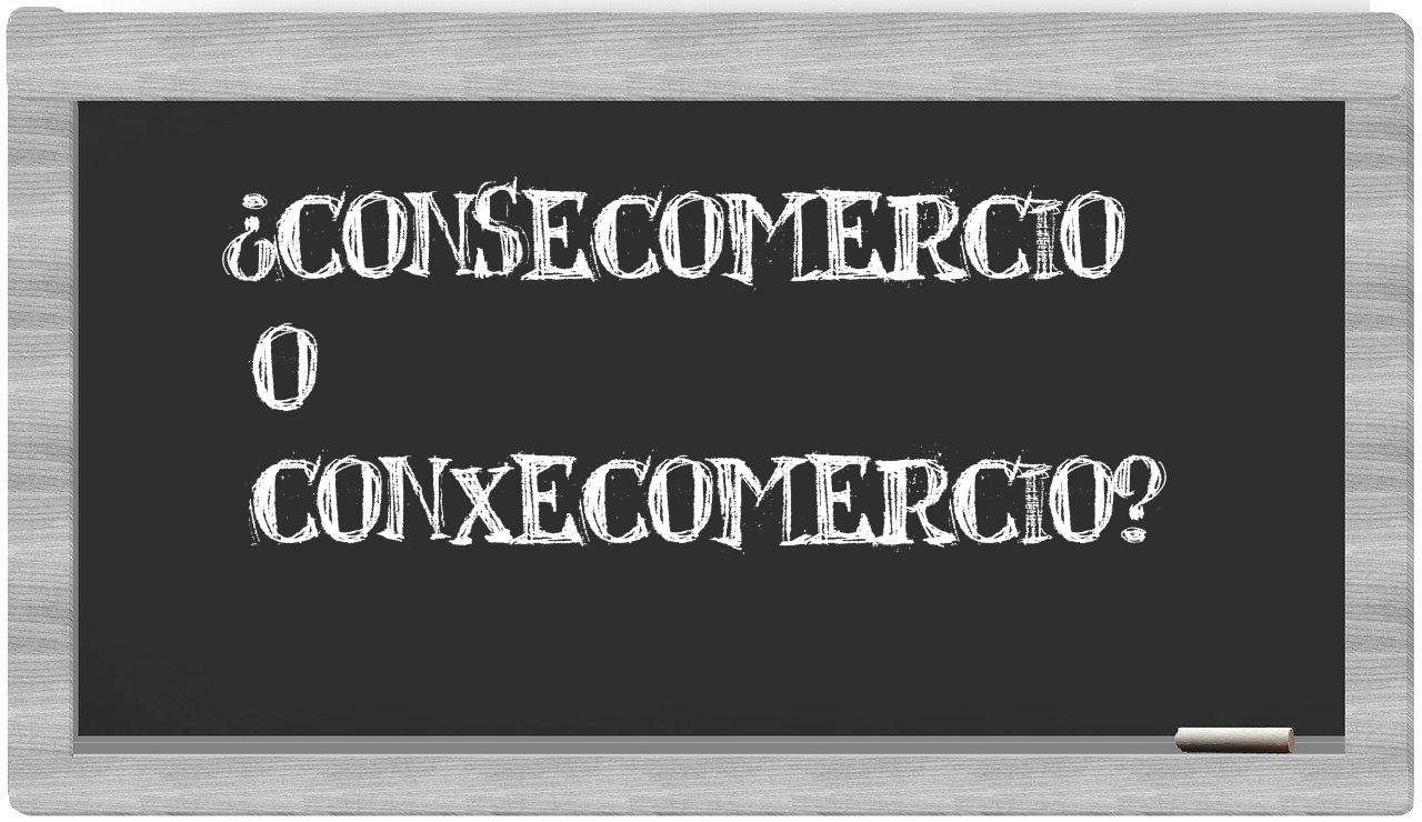 En la situación particular que involucra los términos consecomercio y conxecomercio, nunca deberías titubear, pues únicamente consecomercio es el que está redigido adecuadamente. Por otro lado, conxecomercio no se encuentra registrado en el Diccionario de la Real Academia Española.