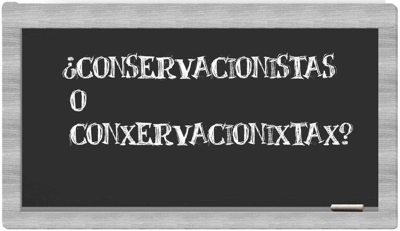 Cuando te enfrentes a la disyuntiva entre conservacionistas y conxervacionixtax, no hay lugar para la incertidumbre, porque únicamente conservacionistas es la que se encuentra validada y aceptada, mientras que conxervacionixtax no figura en el prestigioso Diccionario de la Real Academia Española.