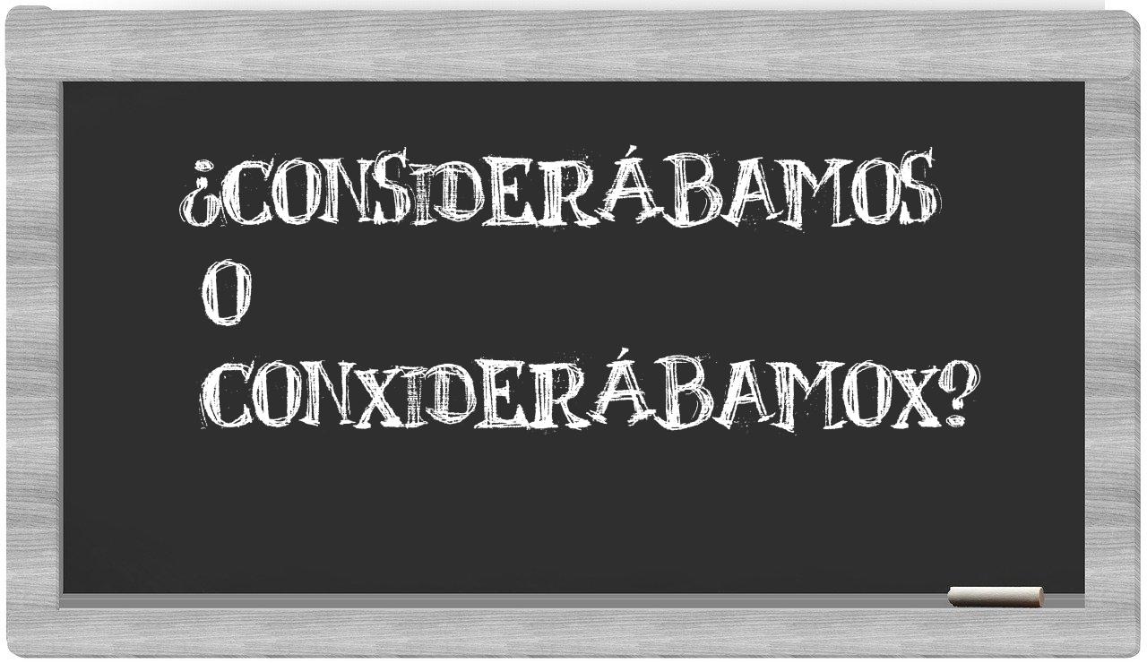Cuando se trata de la relación entre considerábamos y conxiderábamox, no hay lugar para la incertidumbre, puesto que considerábamos es la única que se encuentra registrada de manera adecuada, mientras que conxiderábamox no forma parte del léxico del Diccionario de la Real Academia Española.