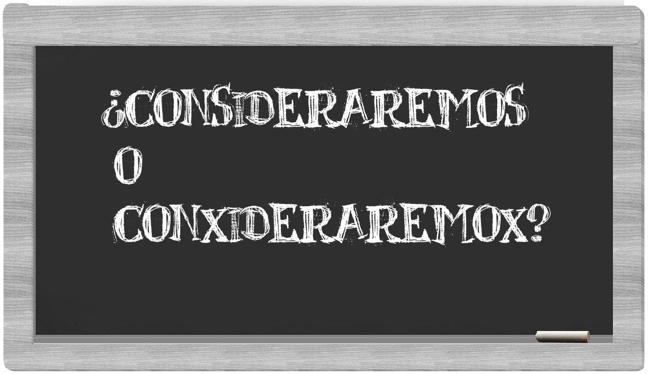 Cuando se trata de elegir entre consideraremos y conxideraremox, la decisión es evidente, puesto que solo consideraremos refleja la forma adecuadamente registrada, mientras que conxideraremox no se encuentra en el repertorio del Diccionario de la Real Academia Española.