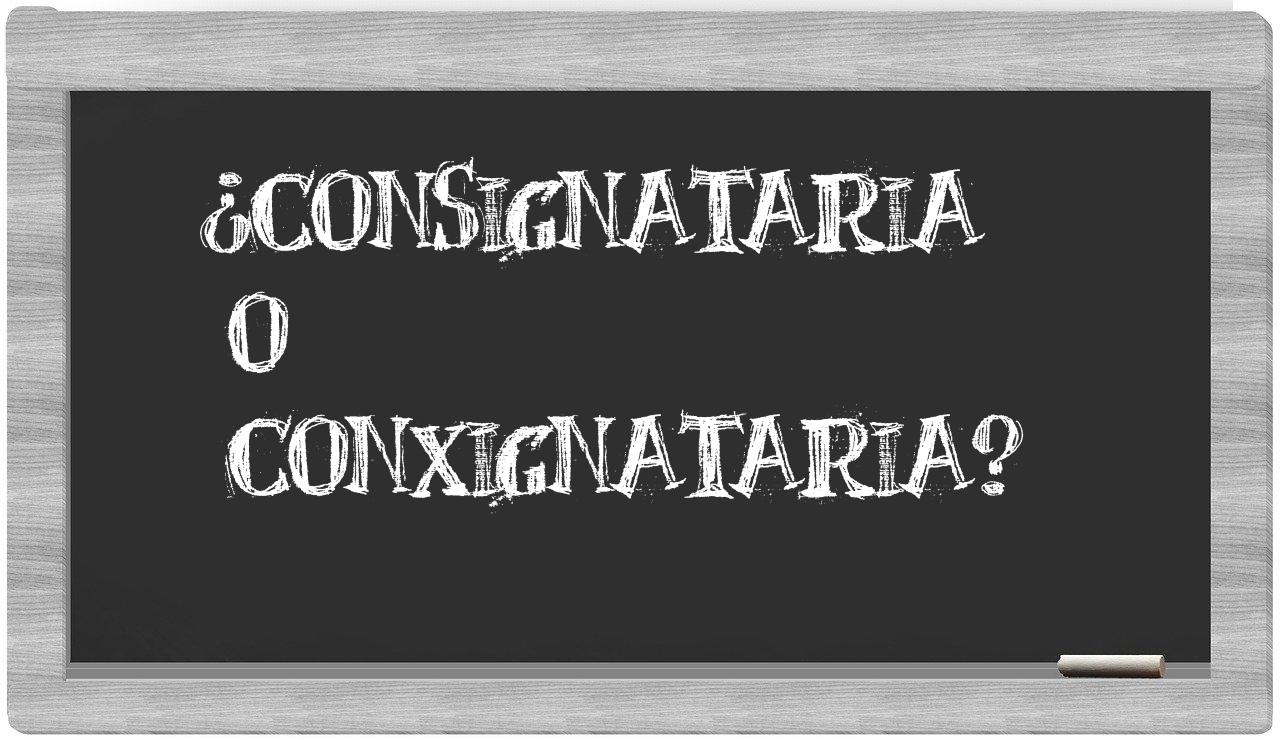 Cuando se trata de la elección entre los términos consignataria y conxignataria, no deberías tener ninguna incertidumbre, puesto que solo consignataria se encuentra debidamente registrada en el Diccionario de la Real Academia Española, mientras que conxignataria carece de reconocimiento oficial.
