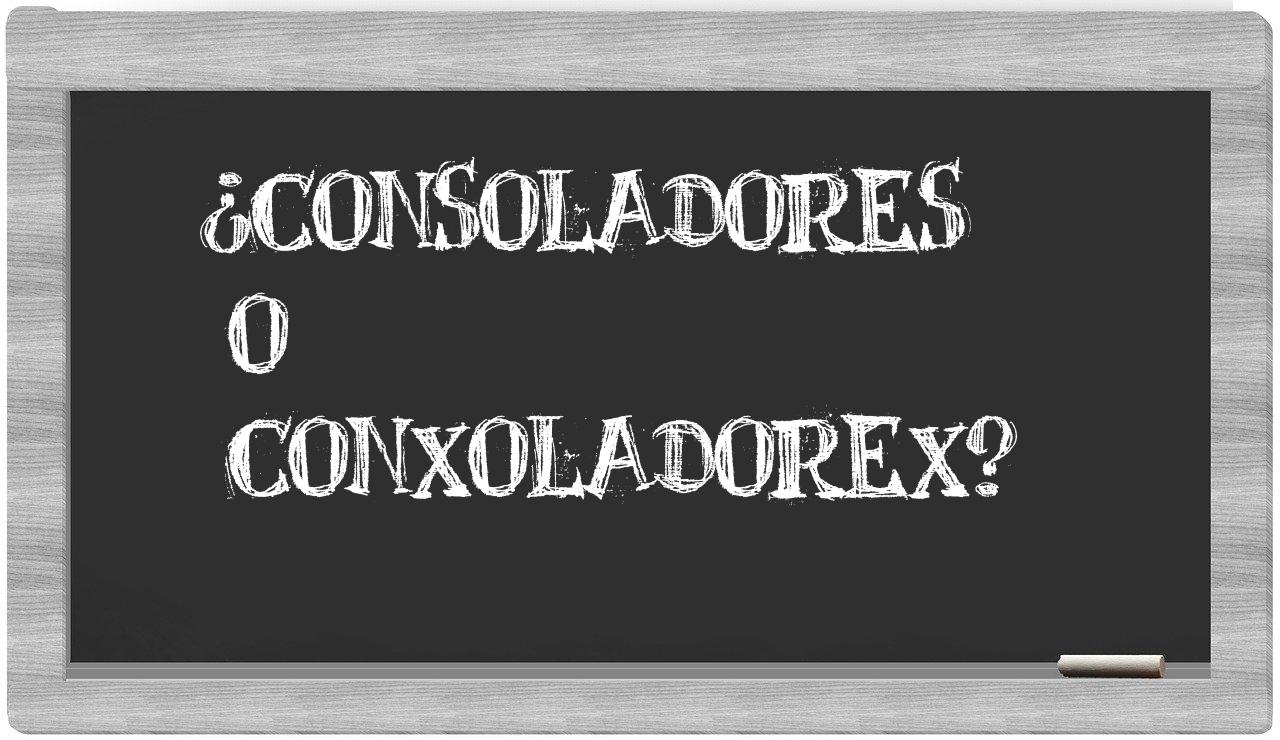 Cuando se trata de la distinción entre consoladores y conxoladorex, es fundamental que no titubees, puesto que únicamente consoladores se presenta como la opción adecuada. Cabe mencionar que conxoladorex no figura en el Diccionario de la Real Academia Española.