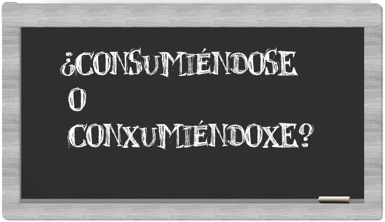 En la particularidad que rodea a las voces consumiéndose y conxumiéndoxe, nunca deberías titubear, porque es únicamente consumiéndose la que se presenta de manera adecuada. La forma conxumiéndoxe no figura en el Diccionario de la Real Academia Española.
