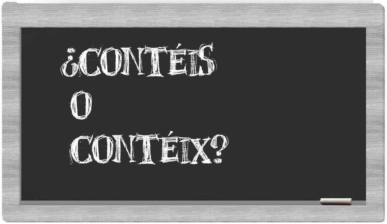 Cuando se presenta la elección entre contéis y contéix, es fundamental que no tengas ambivalencias, puesto que únicamente contéis representa la forma adecuada. Por otro lado, contéix carece de reconocimiento en el Diccionario de la Real Academia Española.