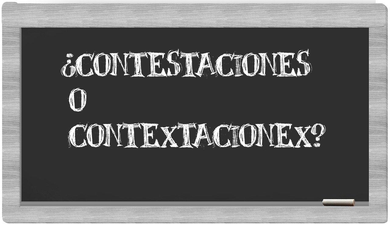 En la singular situación que involucra los términos contestaciones y contextacionex, nunca deberías tener incertidumbre, porque únicamente contestaciones se encuentra correctamente redactada. Por otro lado, contextacionex no está registrada en el Diccionario de la Real Academia Española.