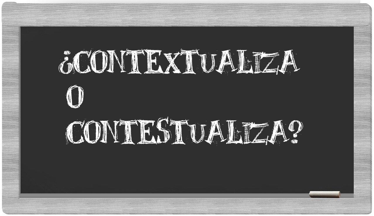 Cuando se trata de la comparación entre contextualiza y contestualiza, debes estar completamente seguro, puesto que únicamente contextualiza se encuentra adecuadamente expresada. Por otro lado, contestualiza no forma parte del léxico reconocido por la Real Academia Española.