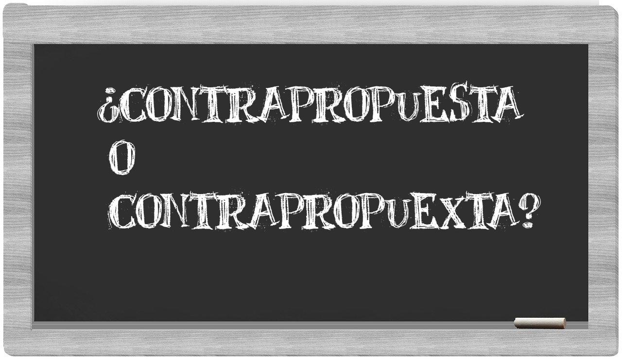 En la particular circunstancia que se presenta entre los términos contrapropuesta y contrapropuexta, nunca deberías titubear, puesto que únicamente contrapropuesta se encuentra correctamente redactado. Por otro lado, contrapropuexta no se halla en el léxico de la Real Academia Española.