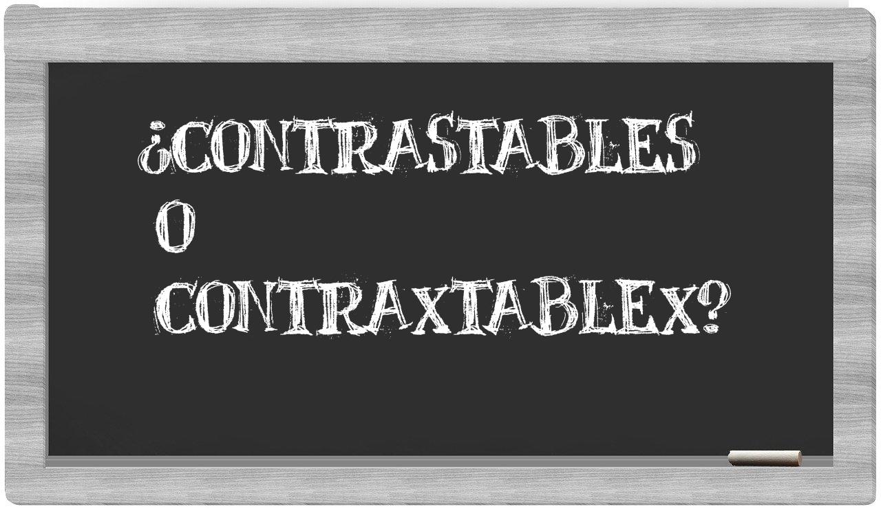 En la singular situación que involucra los términos contrastables y contraxtablex, nunca deberías tener incertidumbre, porque únicamente contrastables se encuentra correctamente redactada. Por otro lado, contraxtablex no está registrada en el Diccionario de la Real Academia Española.