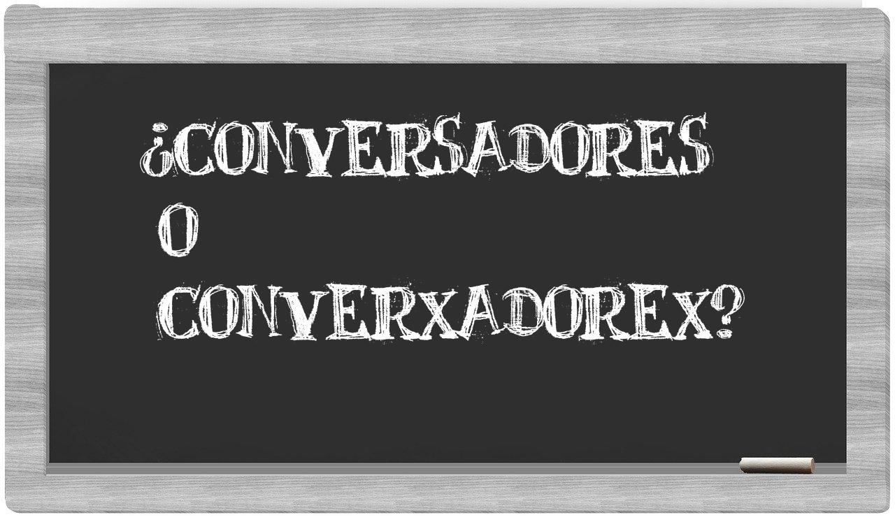 En la situación particular que involucra a conversadores y converxadorex, no hay lugar para la vacilación, puesto que únicamente conversadores se presenta con la ortografía apropiada, mientras que converxadorex es una forma que no se encuentra registrada en el Diccionario de la Real Academia Española.