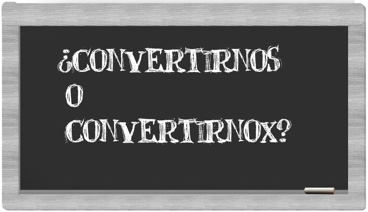 Cuando se trata del dilema entre los términos convertirnos y convertirnox, no debes titubear, puesto que solo convertirnos se encuentra debidamente registrada; en cambio, convertirnox carece de presencia en el Diccionario de la Real Academia de la Lengua.