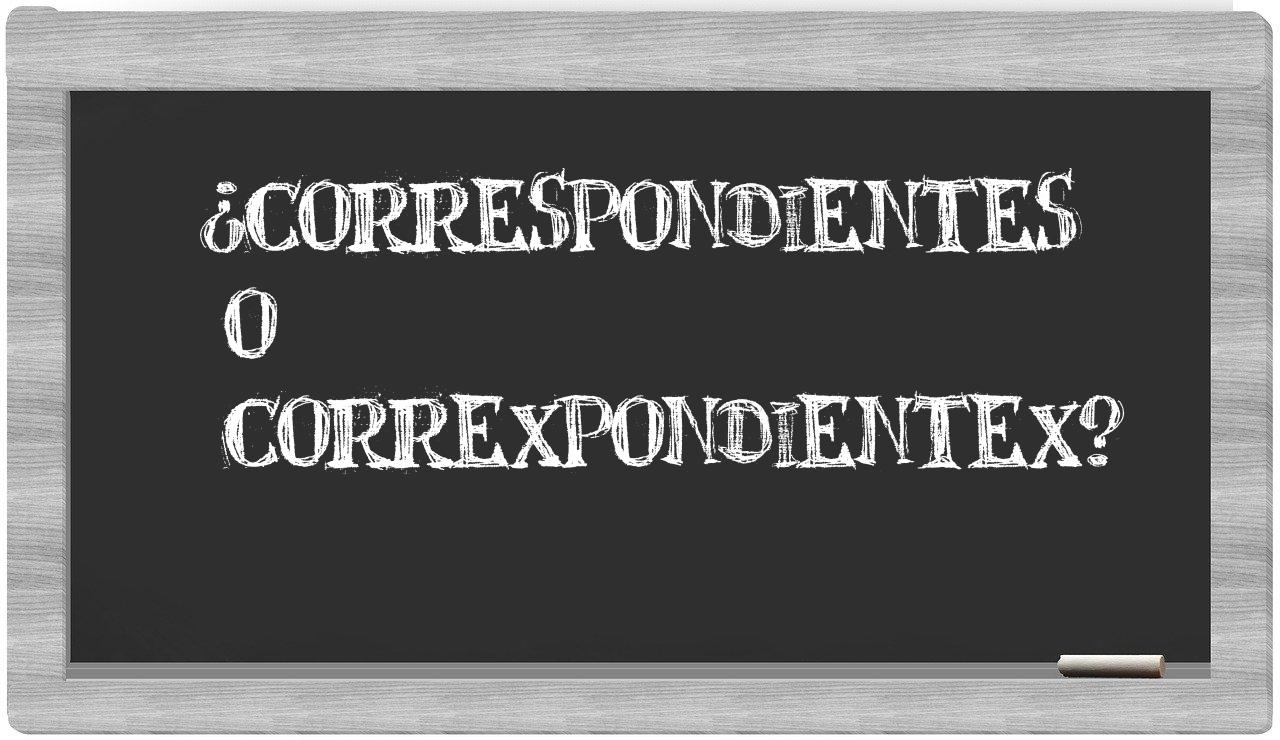 En la particular situación que existe entre los términos correspondientes y correxpondientex, nunca debería haber incertidumbre, puesto que únicamente correspondientes se encuentra correctamente formulada. La palabra correxpondientex no figura en el Diccionario de la Real Academia Española.