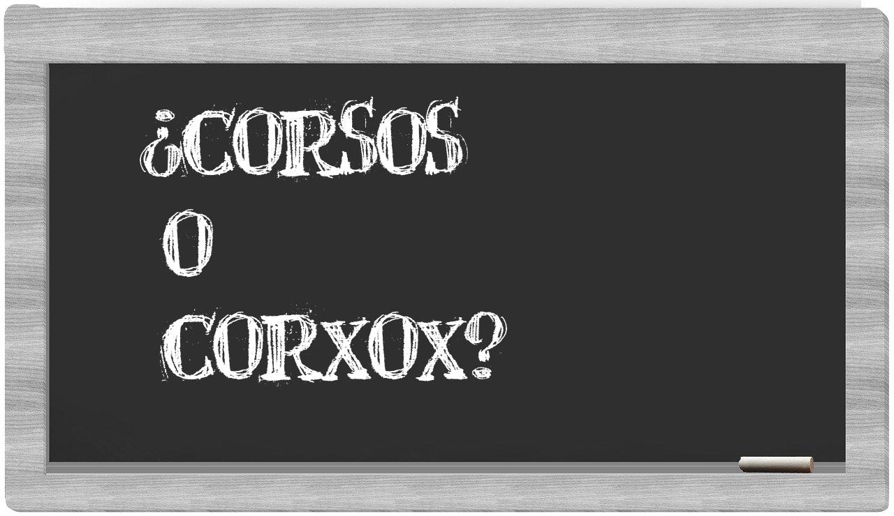 En la situación específica que involucra las palabras corsos y corxox, la elección es evidente, pues únicamente corsos es la que se encuentra correctamente redactada. Por otro lado, corxox no se halla registrada en el Diccionario de la Real Academia Española.