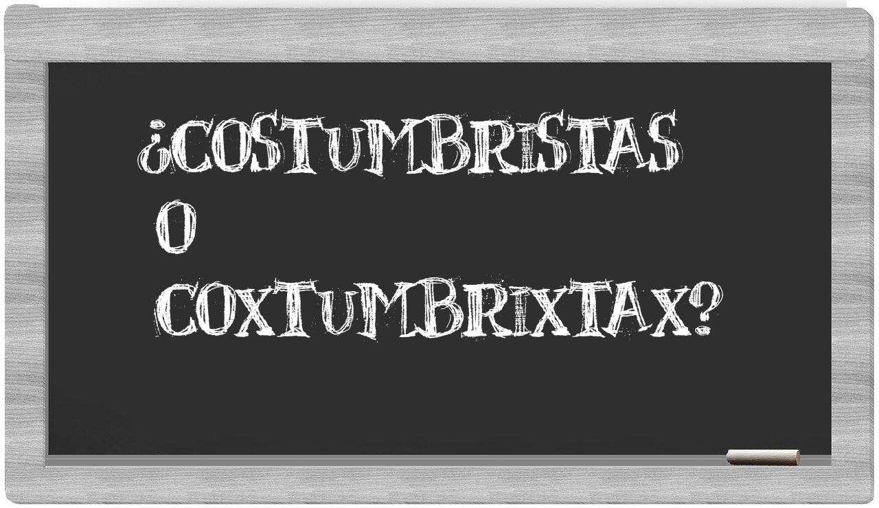 En la situación particular que involucra los términos costumbristas y coxtumbrixtax, es fundamental que no exista incertidumbre, puesto que únicamente costumbristas representa la forma adecuada. Por otro lado, coxtumbrixtax no se encuentra registrado en el Diccionario de la Real Academia Española.
