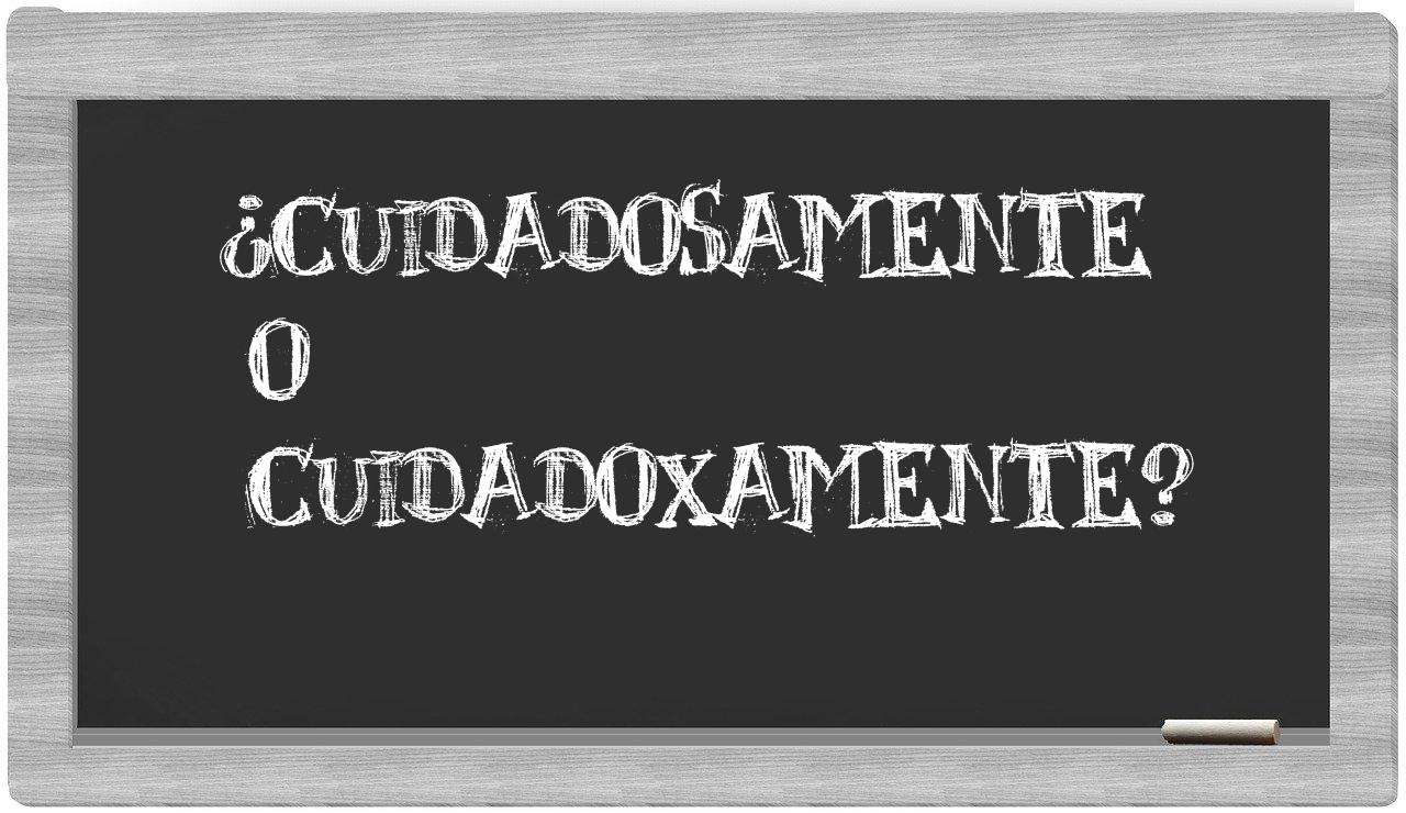 Cuando se trata de la diferencia entre cuidadosamente y cuidadoxamente, la elección no debe ser motivo de incertidumbre, puesto que únicamente cuidadosamente es la forma adecuada y reconocida, mientras que cuidadoxamente no se encuentra en el Diccionario de la Real Academia Española.