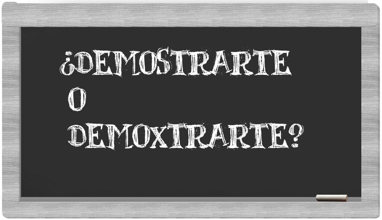 En lo que respecta a la distinción entre demostrarte y demoxtrarte, no debería haber lugar para la incertidumbre, puesto que únicamente demostrarte se encuentra registrada adecuadamente. Por otro lado, demoxtrarte no se halla en el compendio de la Real Academia Española.